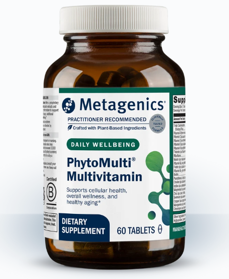 Metagenics PhytoMulti is a comprehensive daily multivitamin and phytonutrient formula designed to bridge nutritional gaps in modern diets and support whole-body health. This practitioner-recommended supplement combines essential vitamins and minerals with a proprietary blend of concentrated plant extracts (phytonutrients) to promote cellular health, energy production, immune function, and healthy aging.